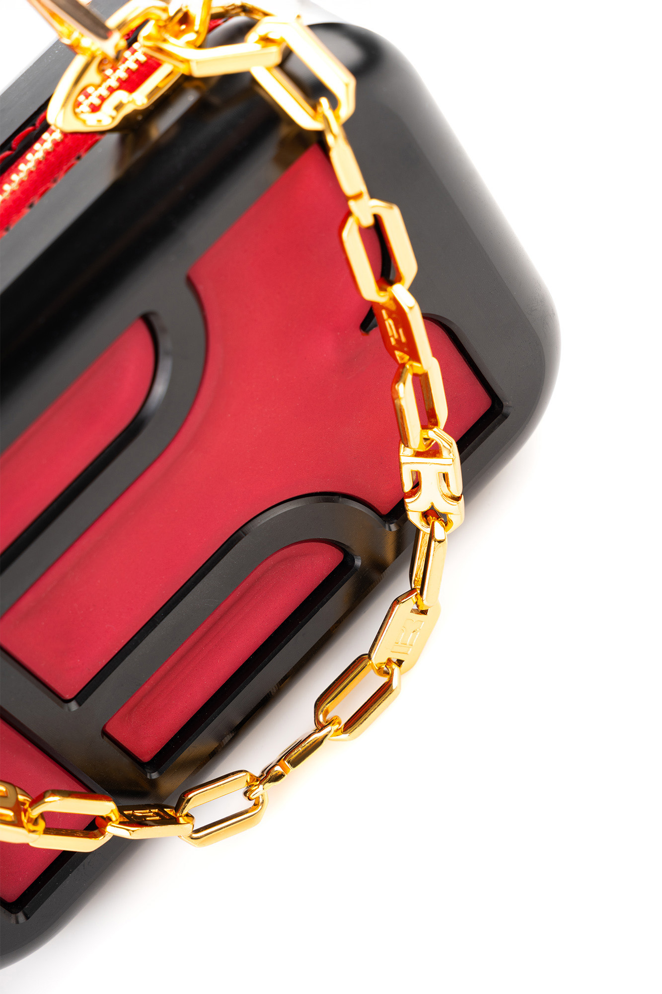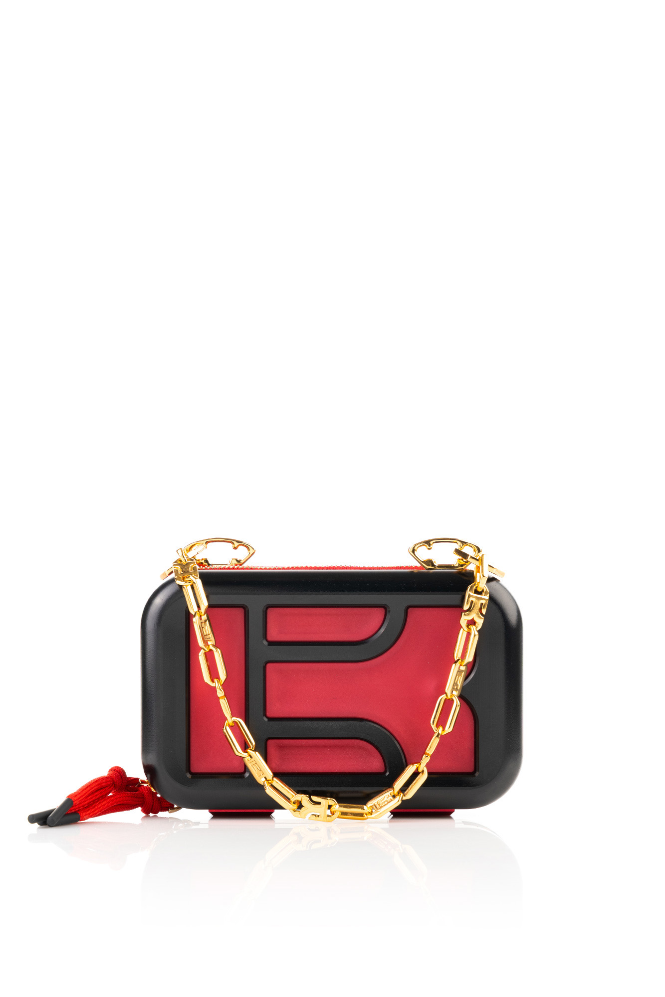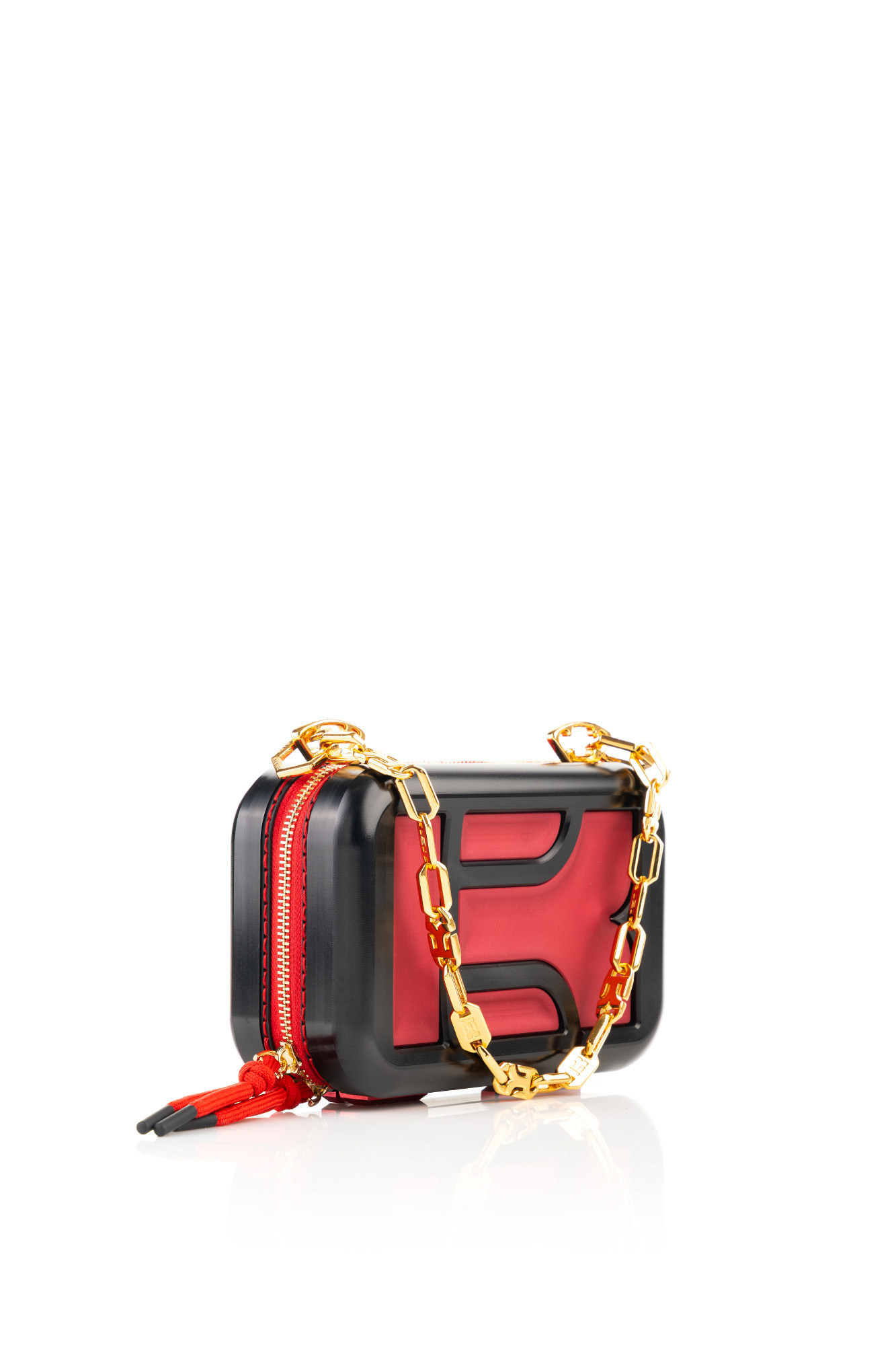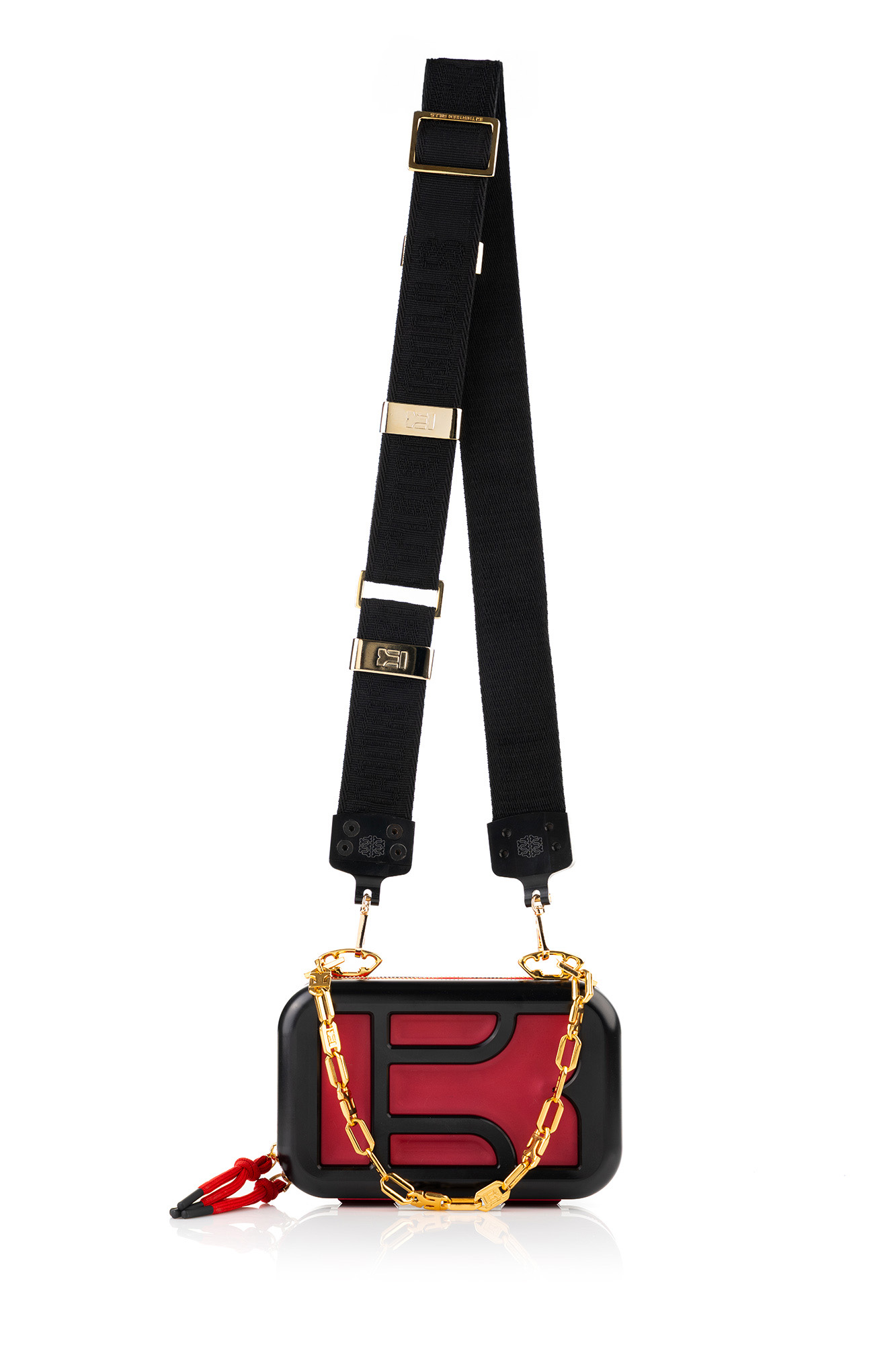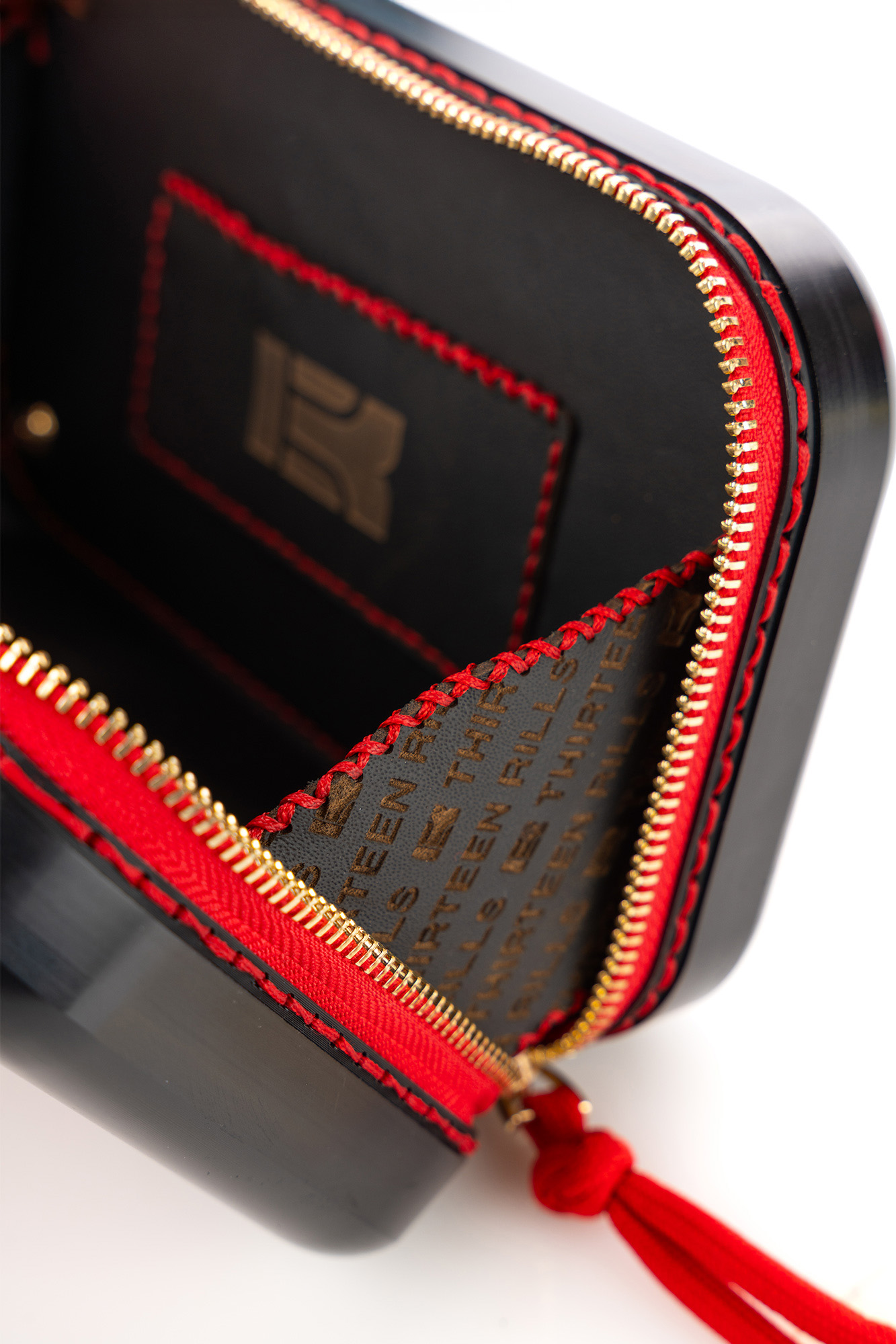 Αλουμίνιο, Δέρμα από μοσχάρι, Χρυσές λεπτομέρειες, Κόκκινος φερμουάρ με χρυσές λεπτομέρειες