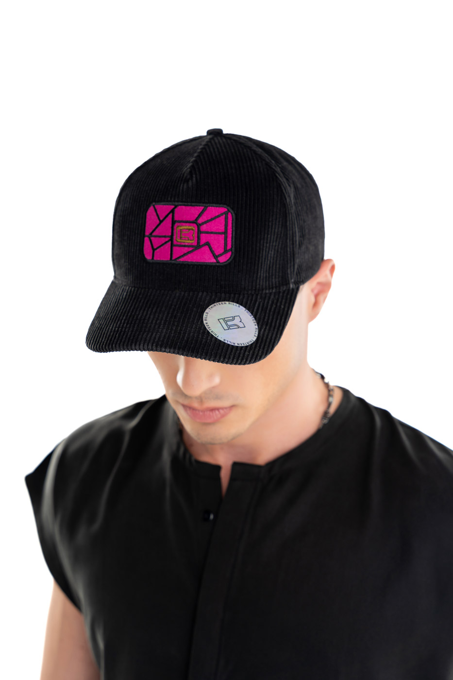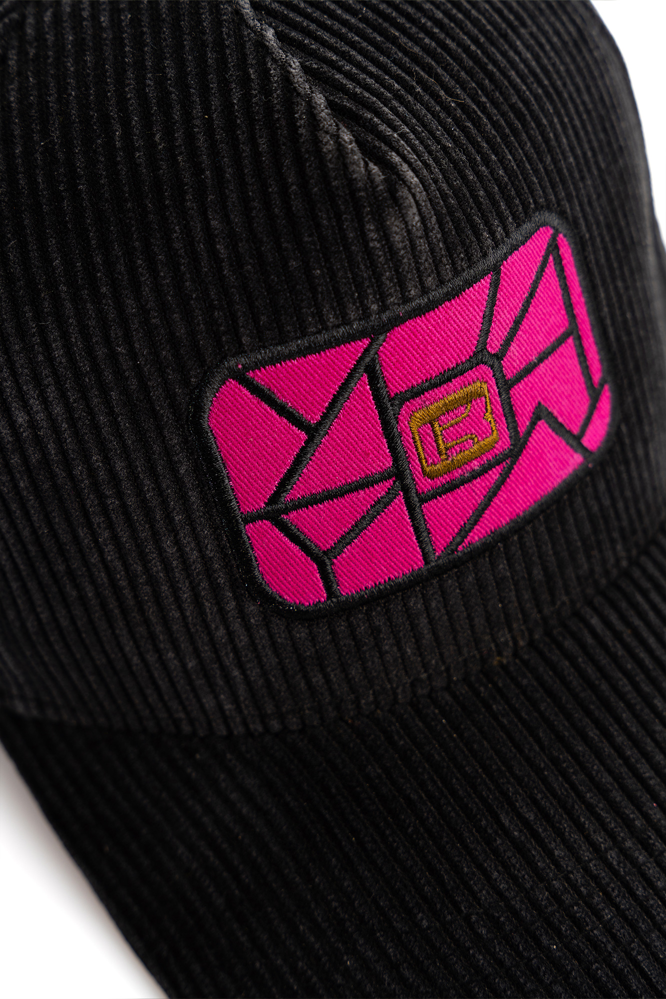 Classic black baseball cap in corduroy fabric, highlighting refined simplicity.