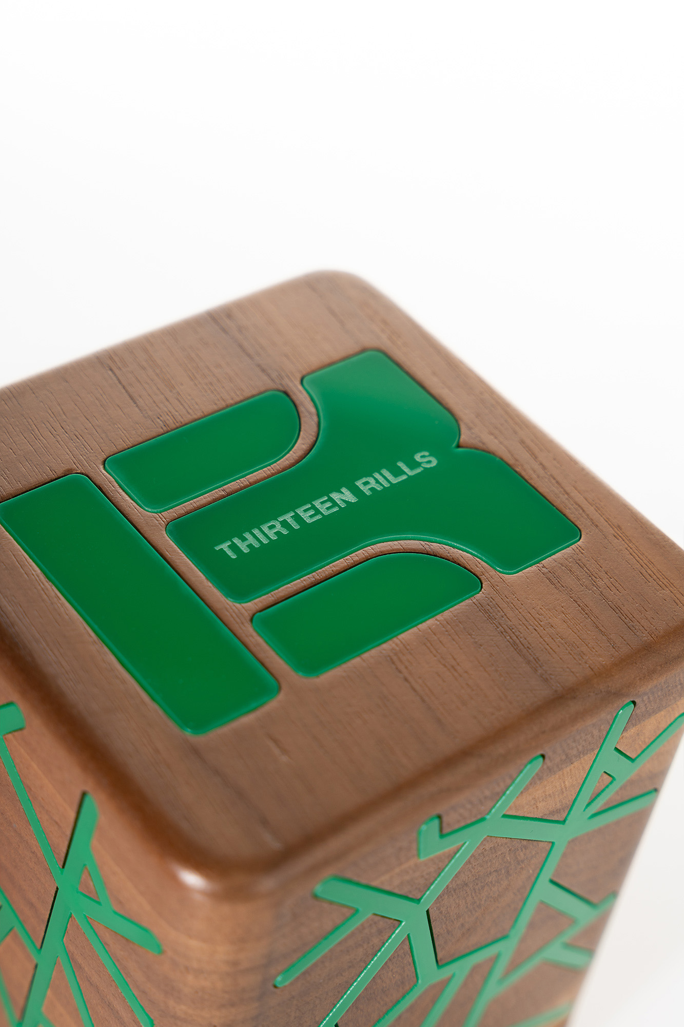 Bottle: 100 ml glass bottle, encased in a fixed aluminum cover with green cap