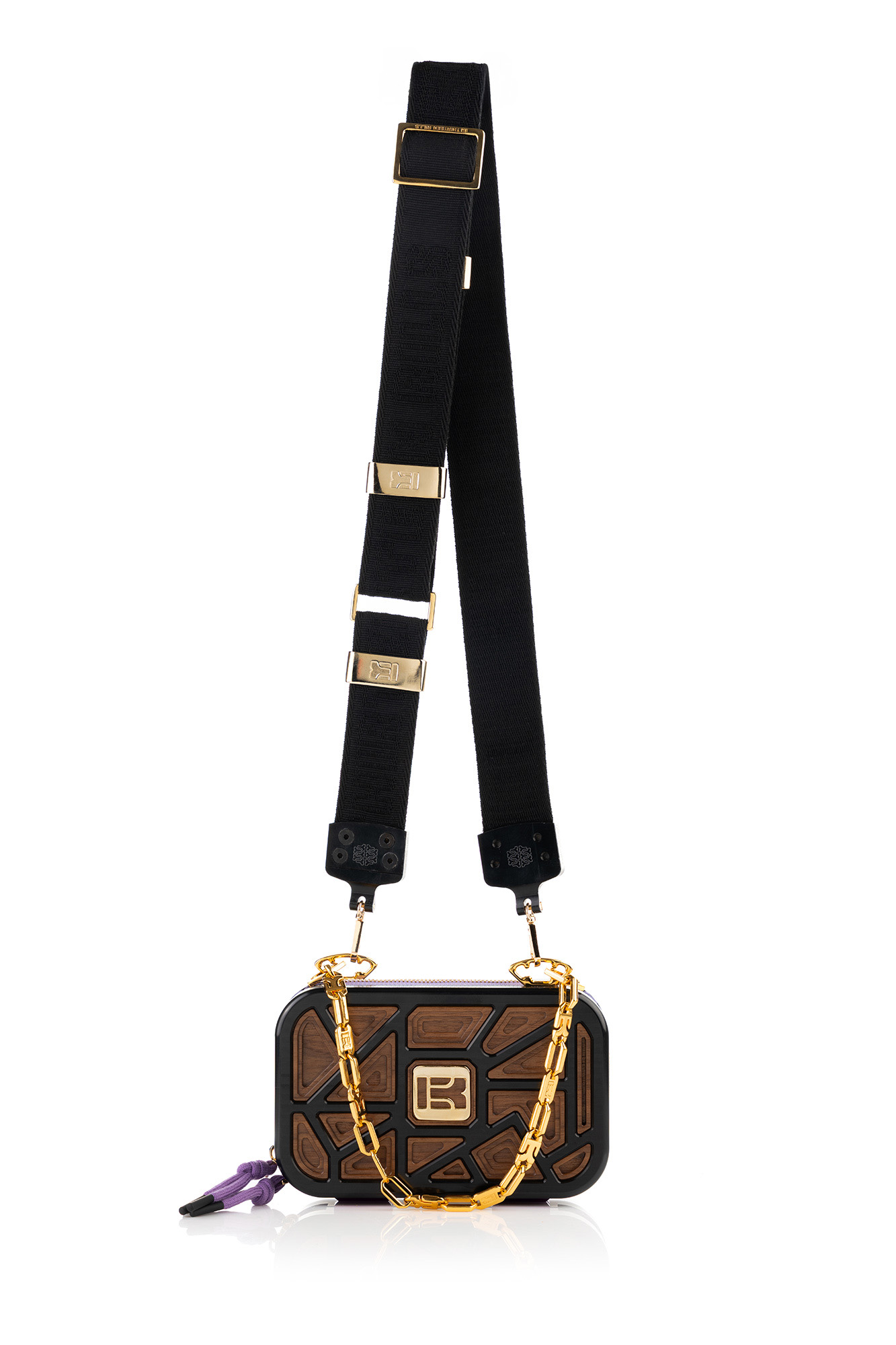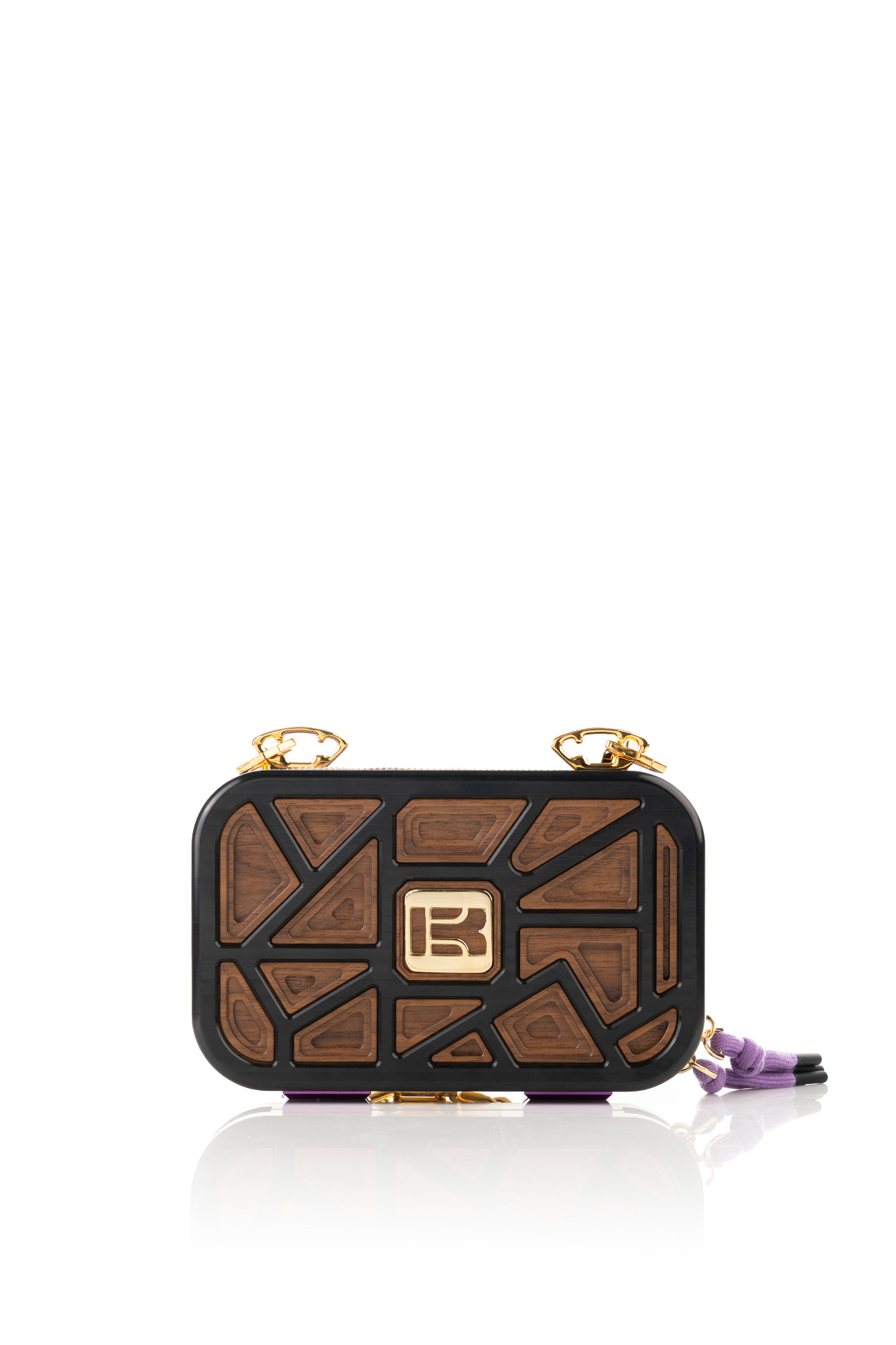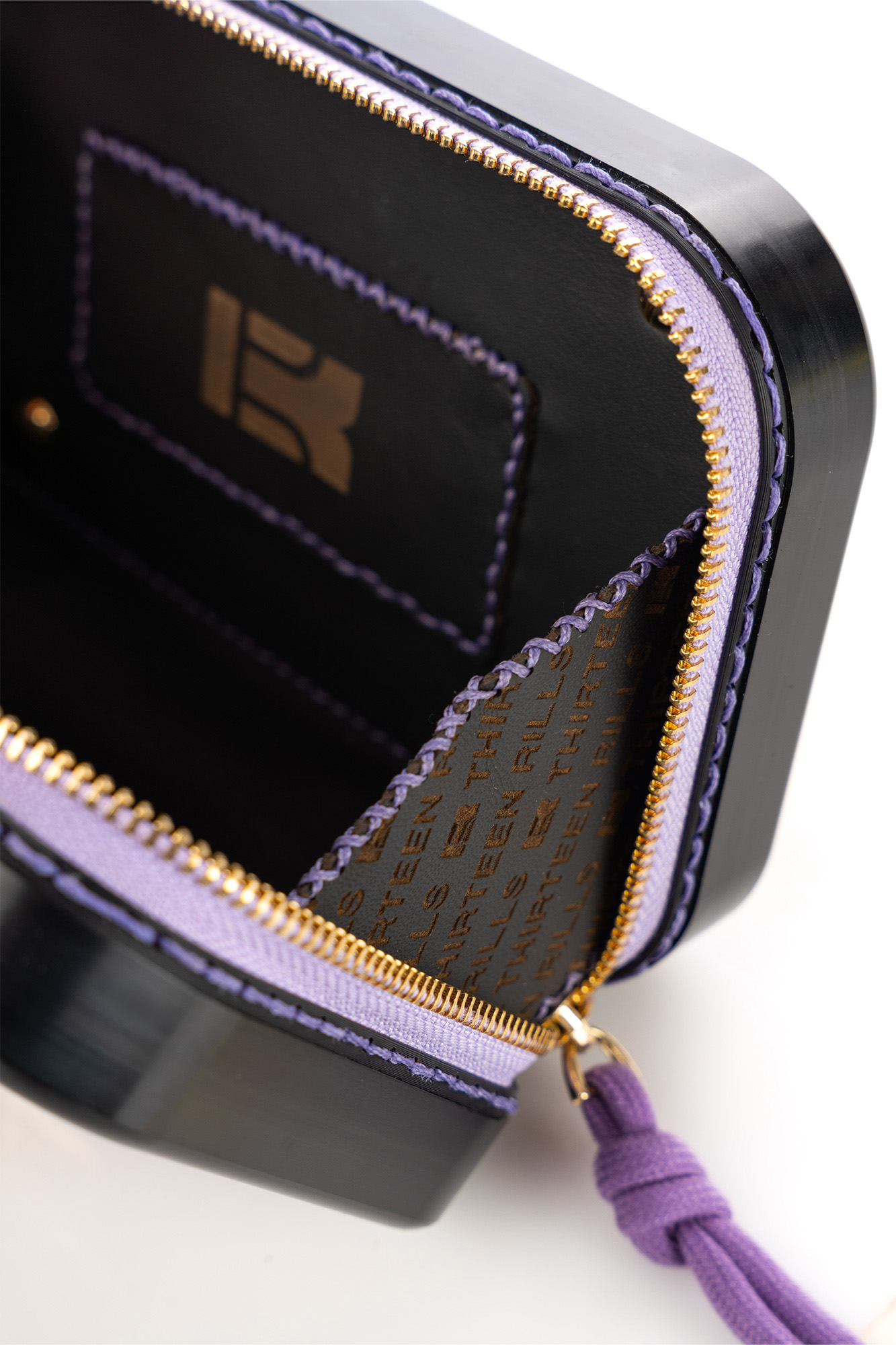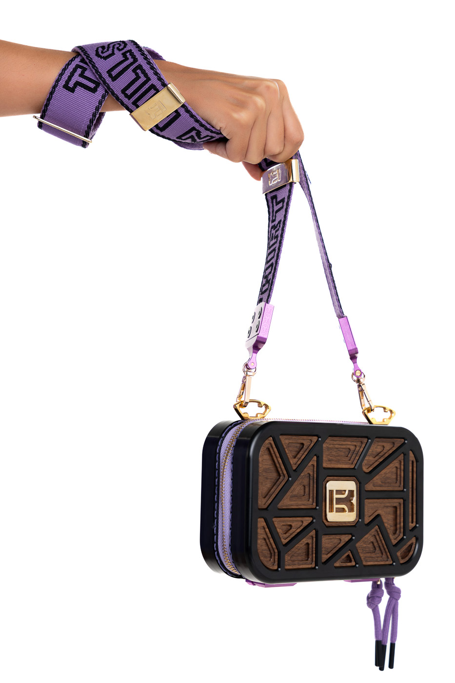 Aluminum + Wood, Calfskin Leather, Gold Details, Purple Zipper with Gold Details