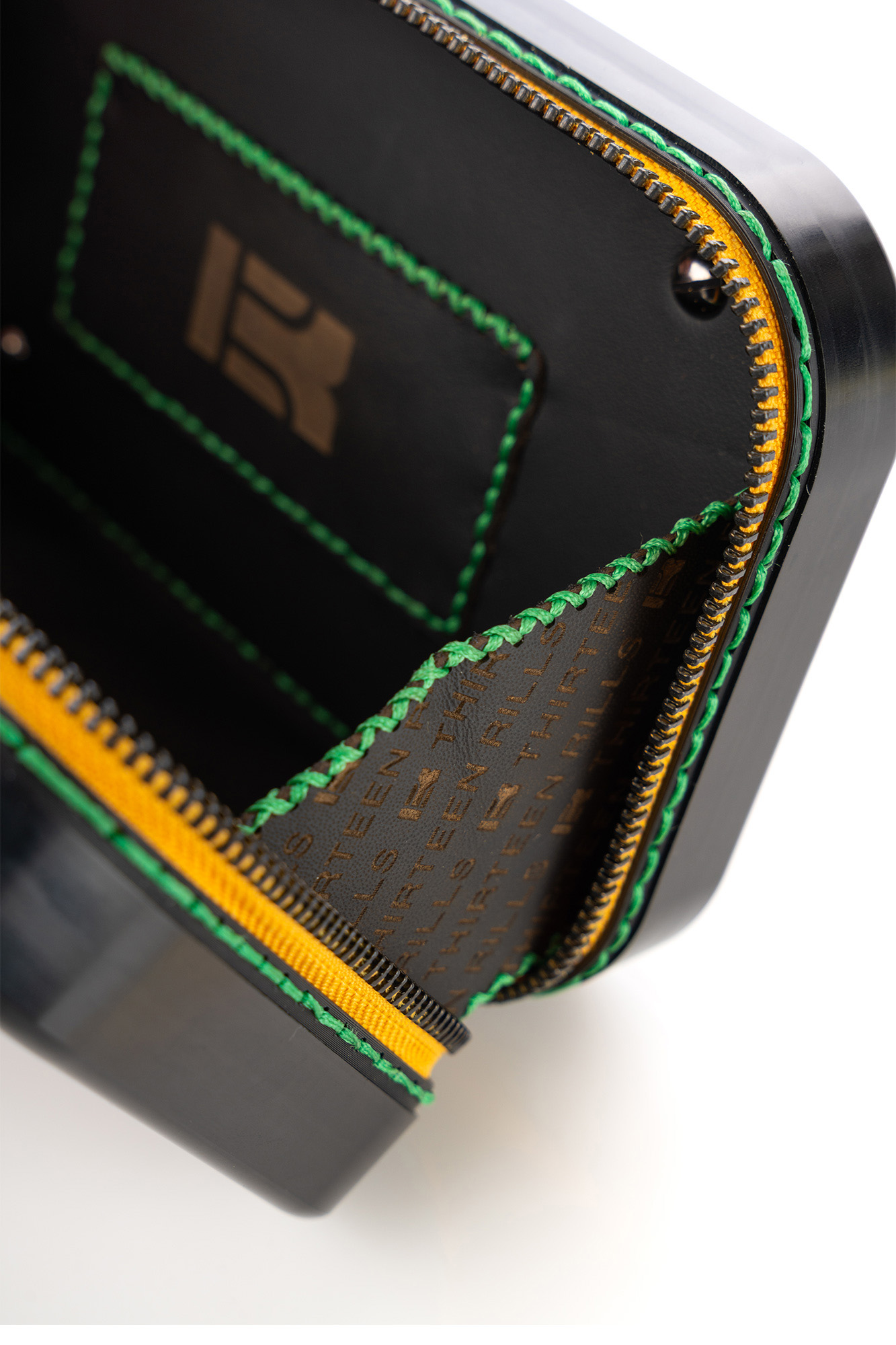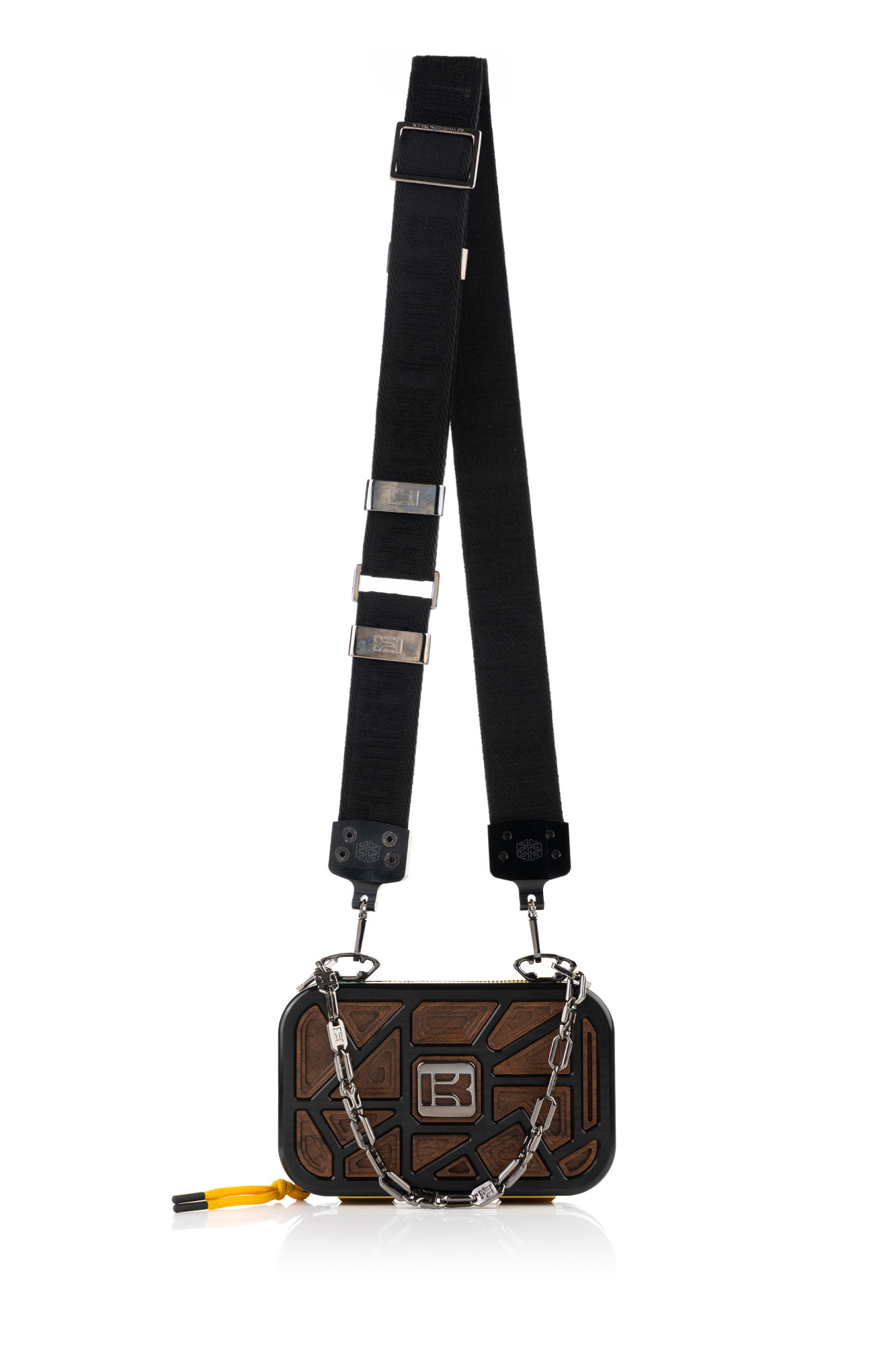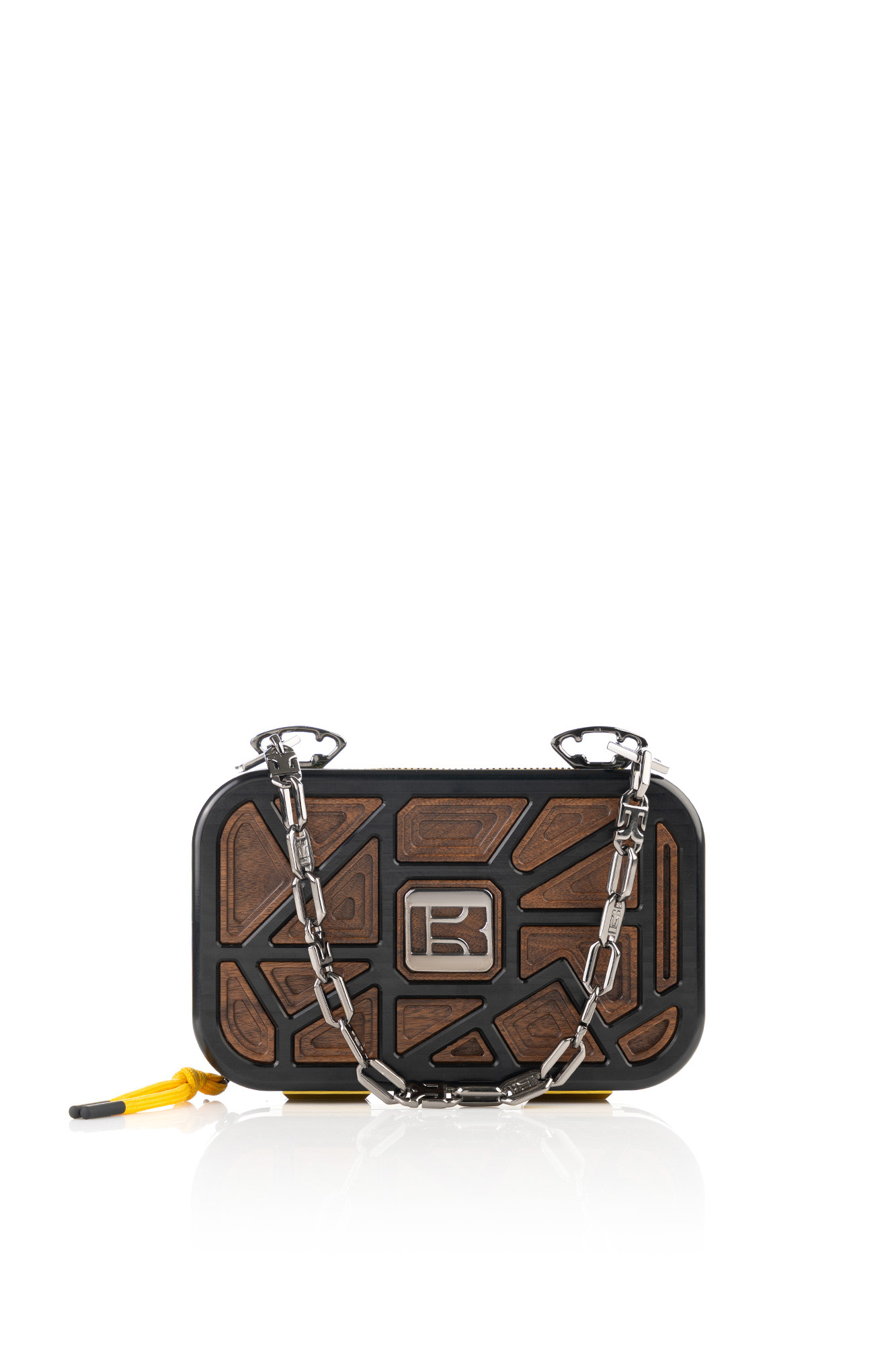 Aluminum + Wood, Calfskin Leather, Black Details, Yellow Zipper with Black Details
