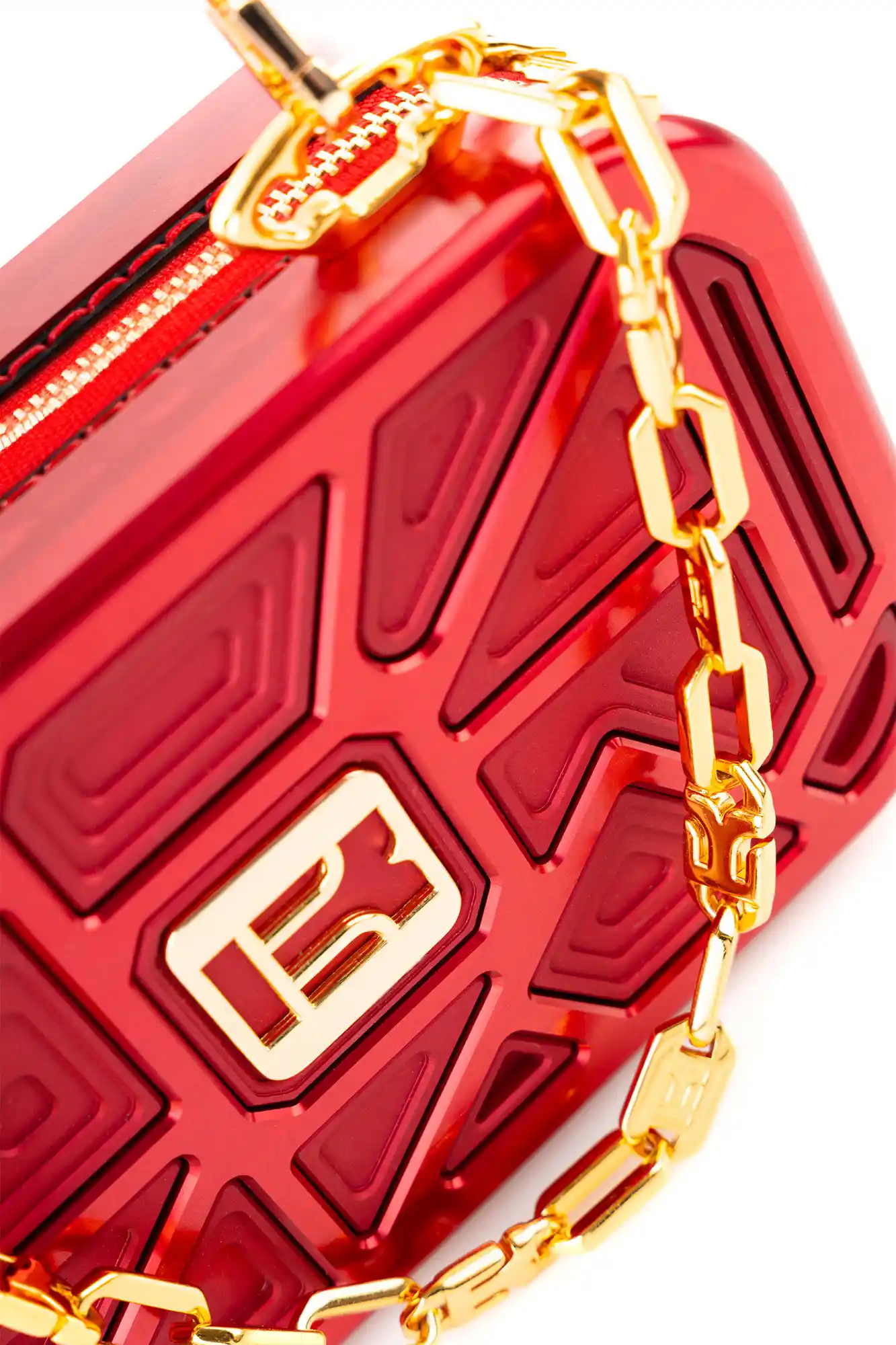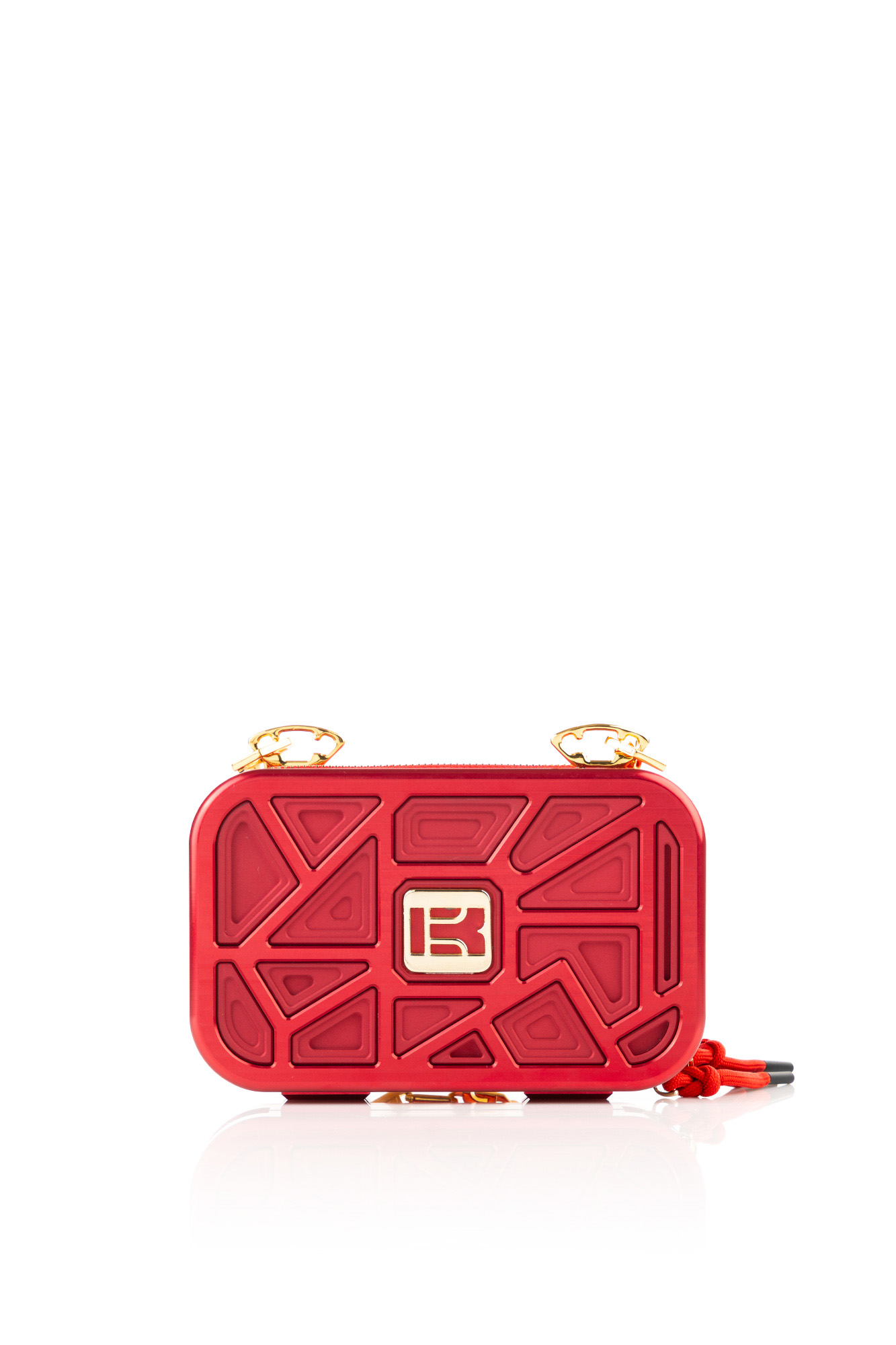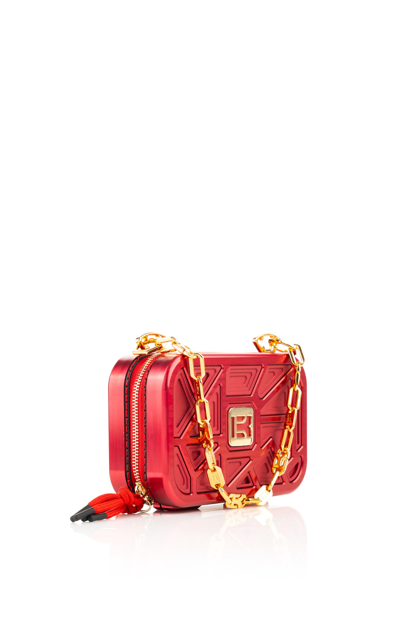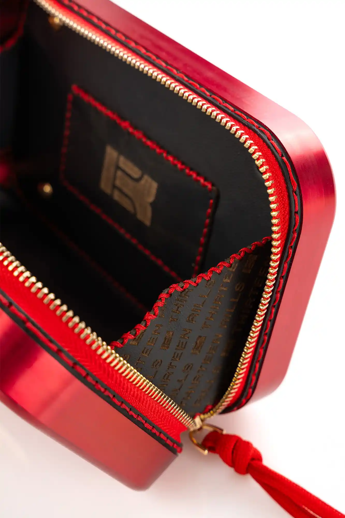 Aluminum, Calfskin Leather, Gold Details, Red Zipper with Gold Details