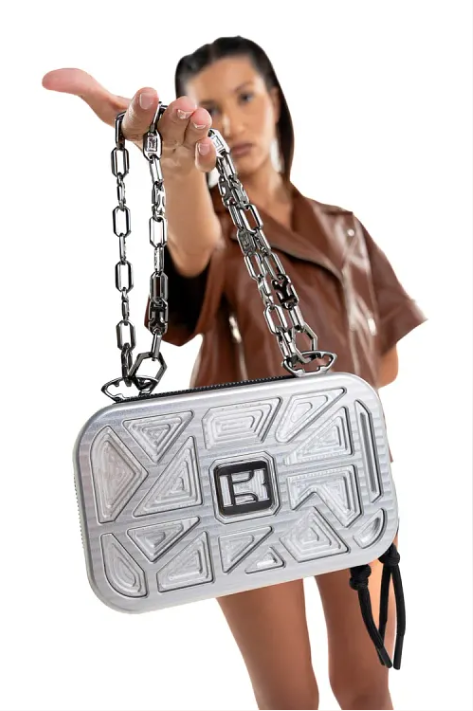 Aluminum, Calfskin Leather, Black Details, Black Zipper with Black Details